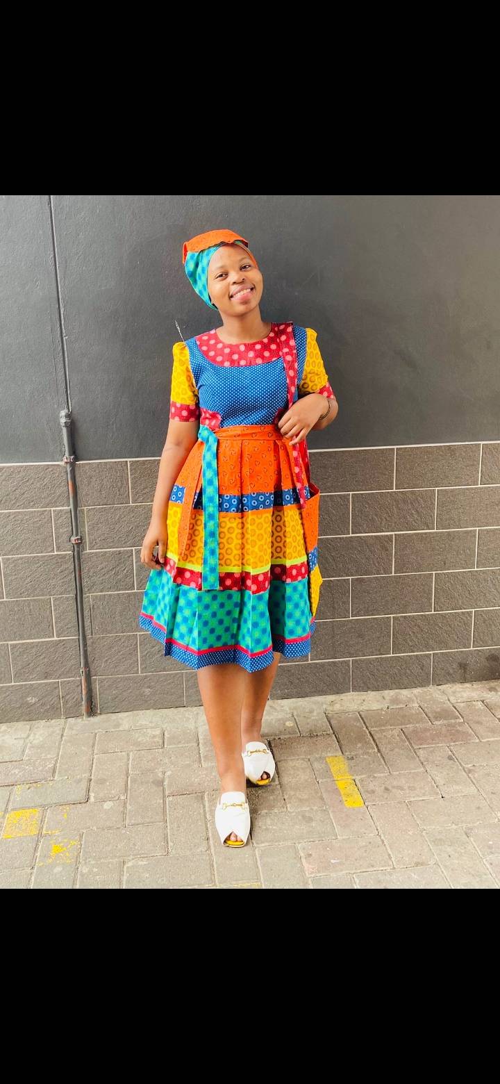 Celebrate vibrant heritage with the Colourful Multi-Print Shweshwe Dress, a perfect blend of tradition and contemporary style. Crafted from authentic Shweshwe fabric, this dress features a lively mix of bold patterns and bright colors, making it a standout piece for any occasion.