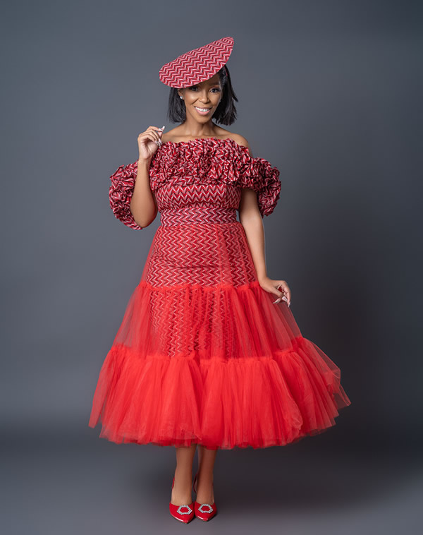 Shweshwe Dress with Tulle underskirt by Faddicofficial