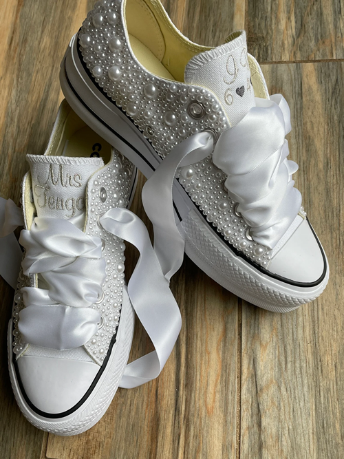 White Pearl Scatter Wedding Converse Custom Bridal Trainers